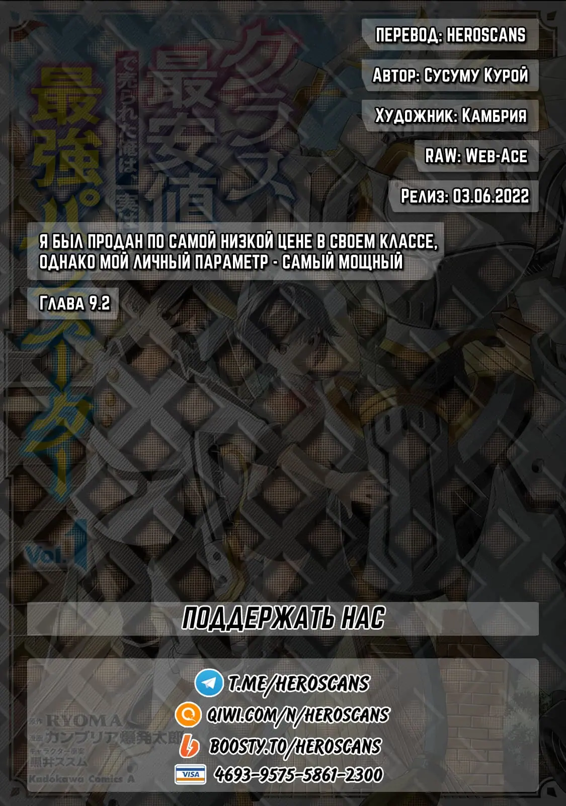 Я был продан по самой низкой цене в своем классе, однако мой личный параметр - самый мощный. (Class Saiyasune de Urareta Ore wa, Jitsu wa Saikyou Parameter) - 9.2 Глава